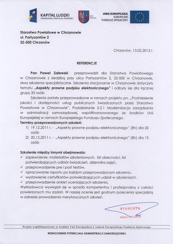 Szkolenie informatyczne "Aspekty prawne podpisu elektronicznego"