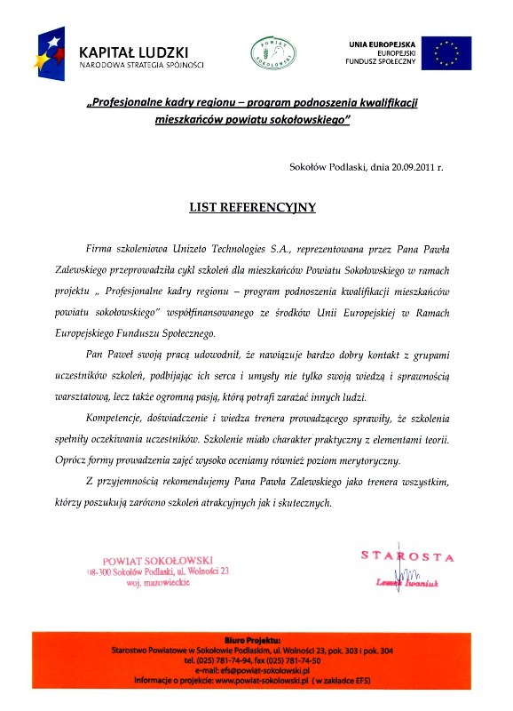 zrealizowane dla pracowników Powiatu Chrzanowskiego w